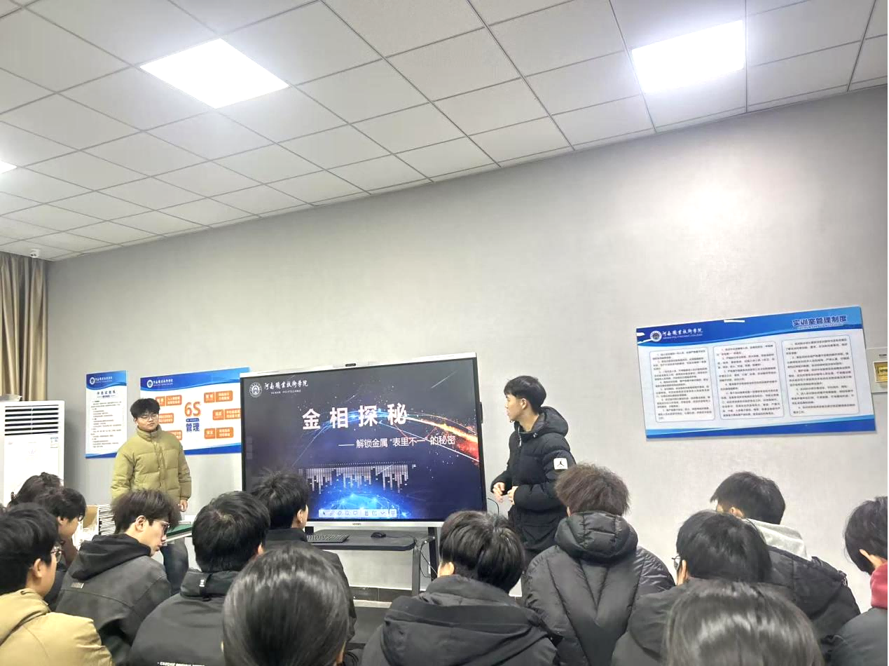 12月22日晚,材料工程学院在智行楼113“机械工程材料实验室”成功举办了“金相探密”主题科创趣味活动。本次活动由科技开发处主办、材料工程学院承办,自策划至开展历时两个多月,得到全院师生的积极协助与支持。活动在潘爱琼老师的全程指导下,由学院科创协会刘家君、李霆吉同学担任主讲,旨在通过互动实践深化学生对材料科学的理解,进一步激发科研探索兴趣。