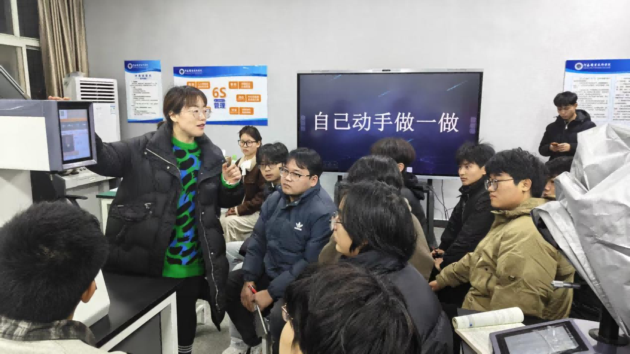 第三环节聚焦金相分析这一材料学科核心,潘老师细致讲解金相试样的制备步骤,并指导学生使用金相显微镜进行现场观察,从微观组织层面解读材料结构与性能的关联。
