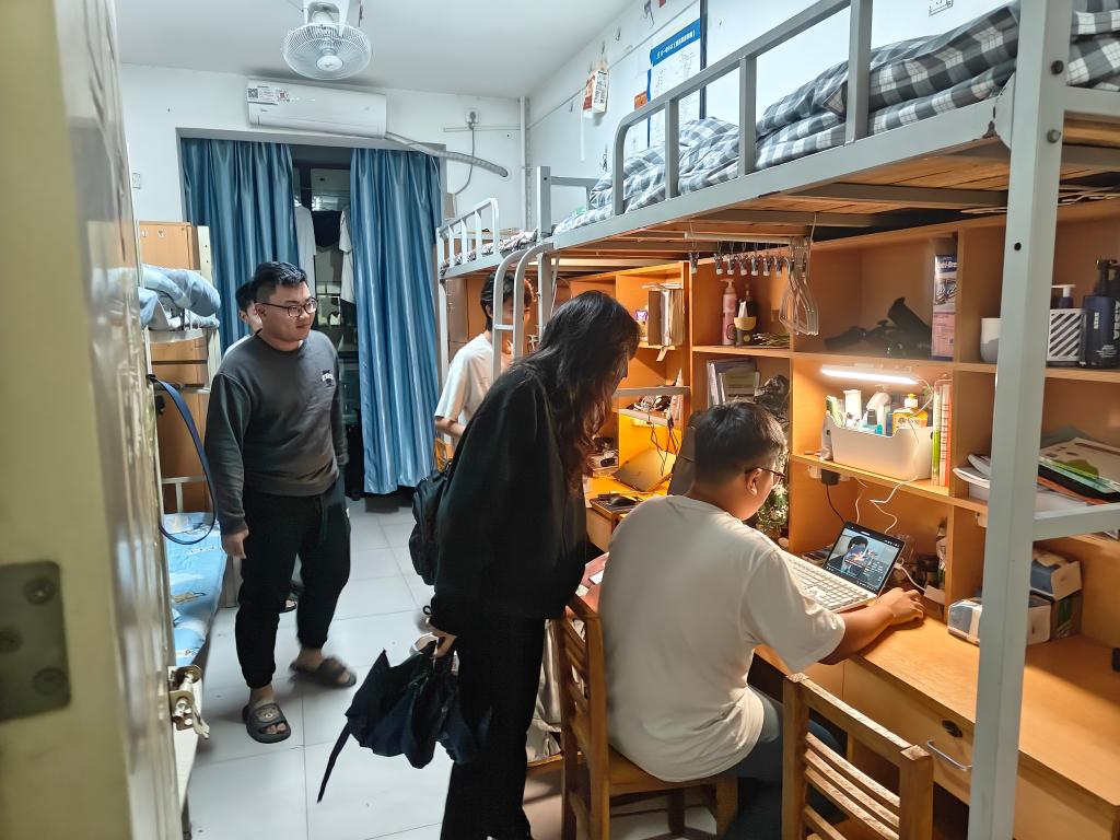 查寝人员逐间检查宿舍。聚焦用电安全,查看是否违规使用大功率电器、私拉电线;同时排查消防隐患,保证消防通道畅通、设施完好。此外,查寝人员还与学生亲切交流,询问假期情况,并叮嘱大家注意用电安全、保持宿舍整洁。