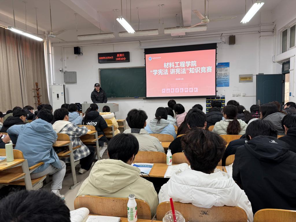 为深入学习贯彻习近平法治思想,大力弘扬宪法精神,增强学生的宪法意识和法治素养,12月24日,材料工程学院组织各班级开展“学宪法、讲宪法”知识竞赛活动,全院学生积极参与,掀起了学习宪法的热潮。