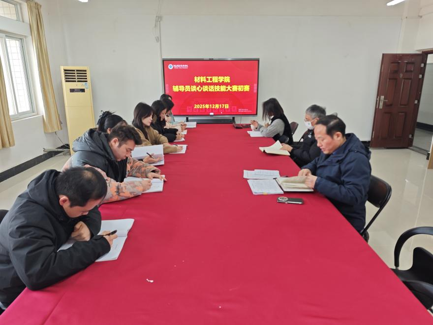 为持续提升辅导员队伍的专业化与职业化程度,夯实立德树人的工作基础,近日,材料工程学院成功举行了2025 年辅导员谈心谈话技能大赛。大赛聚焦新时代大学生的思想动态与成长诉求,着重考查辅导员对学生问题的识别分析、思想引领、心理疏导以及实际问题解决能力。全体专兼职辅导员参赛。学院党总支书记王冠、副书记余湾以及团总支书记张佳担任评委。