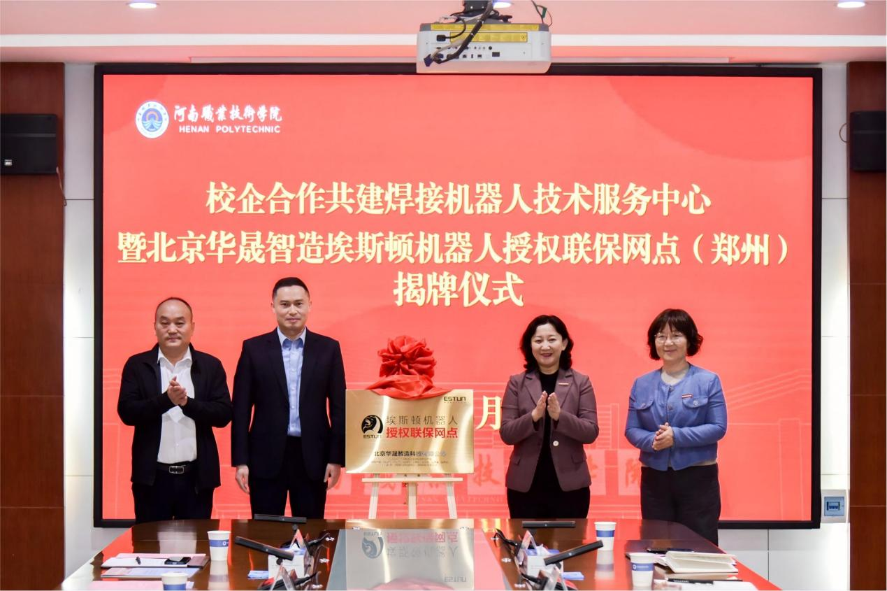 此次揭牌的焊接机器人技术服务中心与授权联保网点,是学校与华晟经世、埃斯顿自动化三方共建的成果,标志着“教学—实践—就业”一体化平台全面落地。该网点立足郑州、辐射华北,集焊接机器人装备及工艺开发、培训、维修保养、调试与原厂备件销售于一体,将打造本地化专业服务团队,助力产教深度融合。